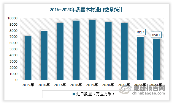 木材是维管构成层向内的成长出动物组织的统称,凡是泛指用于工平易近建建的木制材料。取其他材料比拟,木材具有多孔性、各向同性、湿缩干缩性、燃烧性和生物降解性等奇特征质,被普遍使用于建建、家具、包拆、铁等范畴。木材品品种型很可分为针叶树材和阔叶树材两大类。此中杉木及各类松木、水曲柳、喷鼻樟、檫木及各类桦木、和杨木等是阔叶树材。而我国树种良多,因而各地域常用于工程的木材树种亦各别。例如东北地域次要有红松、落叶松(黄花松)、鱼鳞云杉、红皮云杉、水曲柳;长江流域次要有杉木、西北地域次要有冷杉、云杉、铁杉。木材对于经济成长、就业和糊口程度提拔具有主要感化。除此之外,木材行业还具有深挚的文化价值和生态价值。很多陈旧的建建、雕塑、艺术品以及各式保守家具,都是以木材为次要材料制做而成,承载着人类的汗青和文化回忆。同时做为天然生态系统中的主要构成部门,林木的可持续操纵也关乎到生态均衡和。我国丛林资本丰硕。近年颠末持续植树制林、绿化河山,我国丛林面积持续增加,质量不竭提高,成为全球丛林资本增加最快最多的国度。据国度林草局网坐动静,截止到2022年我国丛林面积达2。31亿公顷,丛林笼盖率攀升至24。02%。别的按照国度林草局目前正正在组织编制《科学开展大规模河山绿化三年步履打算》,明白了2023—2025年河山绿化步履的方针使命。按照步履打算,2023—2025年,确保每年河山绿化1亿亩,人工制林不低于2000万亩。正在制林绿化空间适宜性评估的根本上,沉点向一般灌木林地、疏林地、宜林草地和盐碱地、沙地等其他地盘要空间,力争新增制林空间不低于2亿亩。得益于我国丰硕的丛林资本,我国每年木材出产量位居世界前列。2015-2023年我国木材产量全体呈上升趋向。数据显示,2022年我国木材产量为10693万立方米。2023年我国木材产量为11944万立方米。